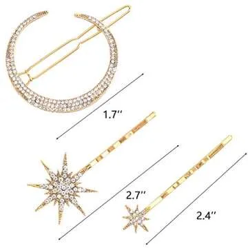 Crafted from premium quality alloy, these hair clips are designed to be both stable and durable, resisting fading and rust over time, so they maintain their radiant glossy appearance. Each clip showcases a sparkling rhinestone design, featuring beautiful moon and star shapes that add a touch of elegance to any hairstyle.