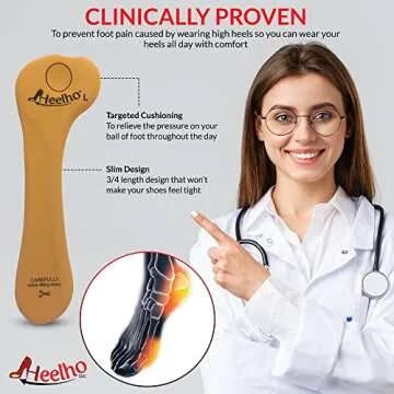 Show more When it comes to wearing high heels, comfort often seems like a distant dream. However, with the revolutionary heelho shoe inserts, you can elevate your style without sacrificing comfort. These patented metatarsal support inserts are designed specifically for women, providing unparalleled relief where it matters most. Engineered with a unique indention and support technology, heelho inserts ensure that your feet stay pain-free, whether you're gliding across the floor at a wedding or enjoying a night out on the town.