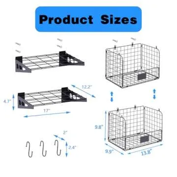 Heevir Garage Wall Shelving with Wire Basket, Heavy Duty Shelf Wall Mount Garage Organizer, Wire Basket with Garage Storage Rack Floating Shelves for Home Garden Workshop Organization and Storage
