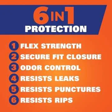 Designed with 6-in-1 protection, these bags don't just hold your garbage, they outperform the competition. Featuring flex strength to handle heavy loads, a secure break-resistant drawstring to prevent ripping, and impressive resistance against leaks, punctures, and rips, these trash bags are engineered for maximum efficiency and reliability. Plus, with our 100% satisfaction guarantee, you can be certain you’re making the right choice!