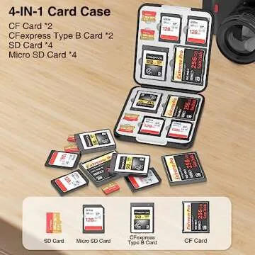 Show moreIntroducing the HEIYING Memory Card Case, a versatile 4-in-1 solution designed to keep your valuable memory cards organized and secure. With the capacity to hold 4 SD cards, 4 Micro SD cards, 2 CompactFlash cards, and 2 CFexpress Type B cards, this compact storage case meets all your daily storage needs in one convenient location, ensuring that you're always prepared for your photography or videography adventures. Whether you are a professional, an enthusiast, or just someone who loves to capture moments, this card case is an essential accessory that provides functionality without compromising on portability.