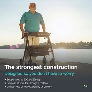 Helavo Bariatric Walker with Large, Height-Adjustable Seat, 500 lbs Weight Capacity, All Terrain 8-inch Wheels, 28-inch Wide - Extra Wide Heavy Duty Rollator for Seniors