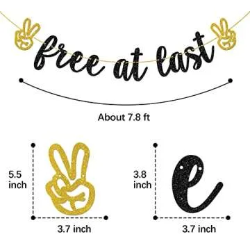 Why You Will Love This Product:This banner not only serves as an eye-catching decoration but also encapsulates the essence of liberation and joy that comes with moving on from significant life events. The sparkly finish captures attention while the customization allows for individual expression. By choosing the Helewilk Black Glitter Free at Last Banner, you're not just purchasing a product; you're embracing a celebration filled with laughter, joy, and new beginnings. Create memories that resonate long after the party ends with this delightful decoration.