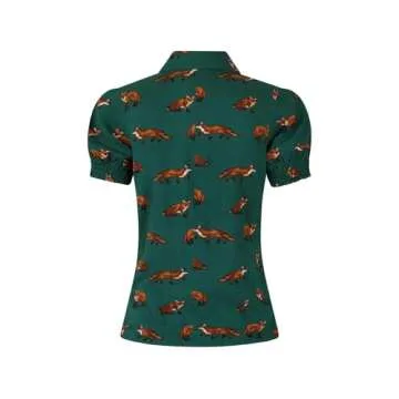 Hell Bunny Vixey Fox Print Blouse - Vintage Retro Pinup Top - Green