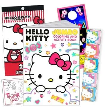 Hello Kitty Coloring Book and Stickers Super Set~ Shaped Foil Cover Hello Kitty Coloring Book with Hello Kitty Stickers & Specialty Sticker! by HUB Studios