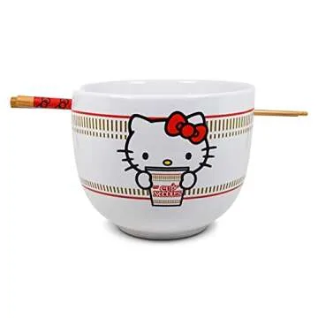Hello Kitty Cup Noodles Dinnerware Set – 20-Ounce Bowl & Chopsticks, Kawaii Gifts