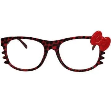 Show moreStep into the world of whimsical fashion with the Hello Kitty Leopard Nerd Frame Clear Lens Glasses, featuring charming bows and whiskers design in a vibrant red color. This unique eyewear is perfect for fans of the iconic feline, bringing a playful touch to your everyday style. Whether you’re rocking a casual outfit or a retro-inspired look, these glasses add a delightful flair that is hard to resist. The vintage-inspired frame measures approximately 6 inches in width and 1.9 inches in height, ensuring a comfortable fit for most face shapes. Designed to stand out, they showcase a trendy leopard print that aligns beautifully with Hello Kitty's playful aesthetic. These glasses not only serve as a fashionable accessory but also protect your eyes with their clear lenses, designed for everyday wear.