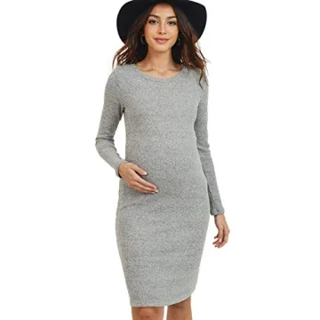 Stylish HELLO MIZ Women's Maternity Knit Long Sleeve Dress