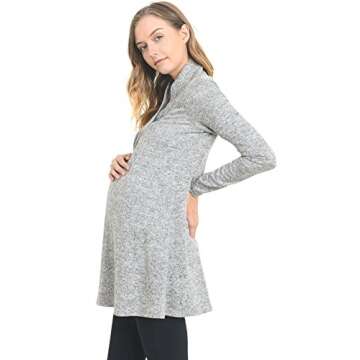 HELLO MIZ Women's Sweater Knit Maternity Long Sleeve Tunic Top (Medium, H.Grey)