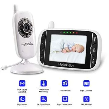 HelloBaby Video Baby Monitor with Camera Digital Color LCD Screen, Zoom and Infrared Night Vision, VOX, Alarm System, Long Transmission Range,Two Way TalkBack and Lullaby (HB32 Baby Monitor)