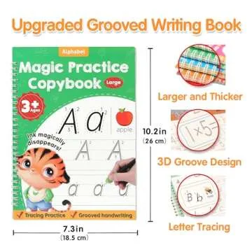 Show more Introducing the upgraded Handwriting Practice Kit, the perfect educational gift designed to ignite a passion for writing in young learners! This comprehensive set includes 5 large magic practice copybooks (Size: 10.2 x 7.3 inches), which are larger than comparable products, ensuring ample space for practicing those essential writing skills. Accompanied by 2 specially designed pens, 2 pen holding aids, and 10 matching refills, this kit stands out as an invaluable resource for children aged 3-7.