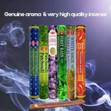 The assorted fragrances include timeless options like Lavender, known for its calming properties, Dragon Blood for a touch of mystique, and the earthy notes of Patchouli. Additionally, you'll find the soothing scents of Frankincense-Myrrh, refreshing First Rain, and purifying White Sage, each catering to diverse preferences and moods. The premium quality of these incense sticks guarantees an even burn, releasing a rich and beautiful fragrance that transforms any space into a sanctuary.
