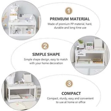 Hemoton Desktop Storage Rack Organizer Double-Layer Cosmetic Stationery Storage Holder Table Sundries Display Shelf for Kitchen Bathroom Office Dorm White