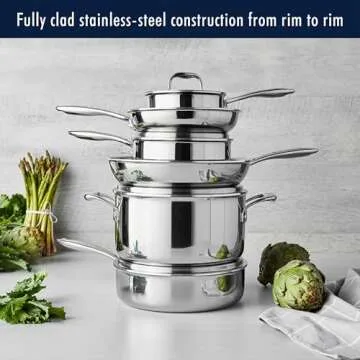 HENCKELS Clad Impulse 10-pc 3-Ply Stainless Steel Pots and Pans Set, Cookware Set, Fry Pan, Saucepan with Lid, Saute Pan with Lid, Dutch Oven with Lid, Stay-Cool Handles, Induction Stove Compatible
