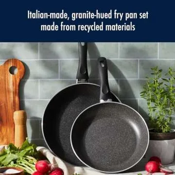 The nonstick granite-hued coating is made from recycled materials, ensuring durability and eco-friendliness.