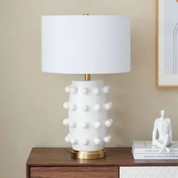 Henn&Hart 26" Tall Ceramic Table Lamp with Fabric Shade in Flat White, for Home, Living Room, Bedroom, Entertainment Room, Office, Kitchen, Dining