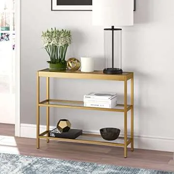 Henn&Hart 36" Wide Rectangular Console Table in Brass, Entryway Table, Accent Table for Living Room, Hallway