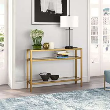 Henn&Hart 42" Wide Rectangular Console Table in Brass, Entryway Table, Accent Table for Living Room, Hallway