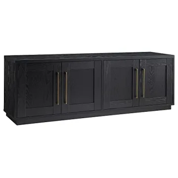 Show moreElevate your living space with the Henn&Hart Tillman Rectangular TV Stand, exquisitely designed to accommodate televisions up to 80 inches with a blend of functionality and aesthetic appeal. Constructed from robust MDF, this TV stand features a sophisticated Black Grain finish that not only ensures durability but also adds a modern elegance to any room. The four elegantly crafted doors conceal spacious cabinets, while the adjustable shelves provide the flexibility to organize your media devices, gaming consoles, and decorative accents seamlessly. With a top surface robust enough to support up to 75 lbs and lower shelves that can hold up to 25 lbs each, this piece is both stylish and practical.