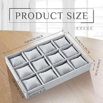 Show moreHenoyso 2 Pieces Gray Velvet Watch Tray Jewelry Organizer is the perfect solution for jewelry enthusiasts and watch collectors alike. With two beautifully crafted trays, each featuring 12 detachable grids, you'll never run out of space for your cherished timepieces and accessories. Designed for versatility, these trays not only hold watches but can also accommodate a variety of other items, making them a thoughtful gift for friends or a refined addition to your personal collection.
