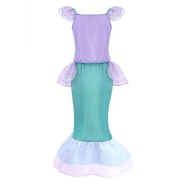 HenzWorld Mermaid Princess Dress Little Girls Costume Dress up Clothes Birthday Party Cosplay Theme Putfit Jewelry Accessories Purple 5-6 Years