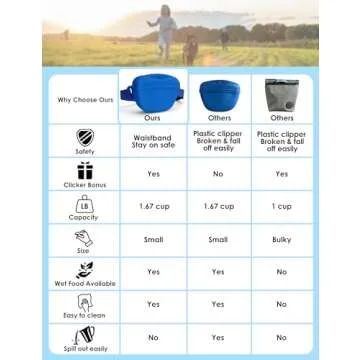 heouvo Dog Treat Pouch with Training Clicker, Upgrade Stronger Magnetic Closure to Avoid Spilling, 1.67 Cup Silicone Treat Bag Fanny Pack with Waist Belt for Pet Training Walking (Blue)