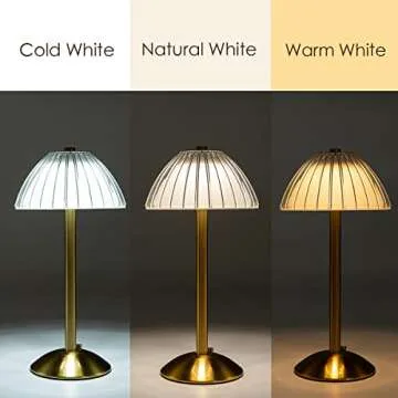 Show moreIlluminate your living spaces with the exquisite HEQET Cordless Table Lamps, designed to blend style with functionality. Standing at a delightful 12 inches tall, these lamps come with a sleek brass gold base and a sturdy white acrylic shade that evokes an elegant 1950s charm. Rechargeable and cordless, they are perfect for any setting, from the cozy corners of your home to outdoor patios. Equipped with three adjustable lighting colors—cold white, natural, and warm white—these lamps allow you to customize the ambiance of any room with ease.