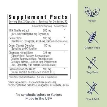 her own Cleanse, Gentle Detox, Supports Healthy Gut, Ocean Algae Cleanse, Prebiotic/Probiotic Blend, Cleansing Herbal Blend, Gluten and Soy Free, Vegan, 60 Capsules, 30 Servings, Multicolor