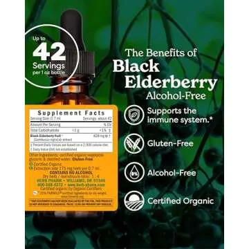 Herb Pharm Certified Organic Black Elderberry Liquid Extract for Immune System Support, Alcohol-Free Glycerite, 1 Ounce