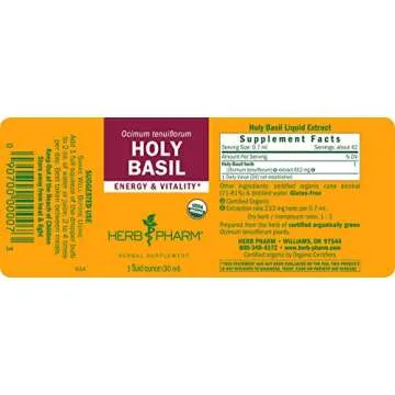 Show moreUnlock the secrets of natural wellness with our Herb Pharm Certified Organic Holy Basil (Tulsi) Extract. This premium extract is specifically formulated to promote energy and vitality, making it a perfect companion for those who seek to harness the invigorating power of nature. Sourced from organically grown Holy Basil, this 1-ounce liquid extract is rapidly absorbed by the body, ensuring you benefit from its potent herbal properties almost instantly. With its gluten-free and non-GMO certification, you can trust that you are making a wholesome choice that aligns with your health values. Experience the goodness of Holy Basil, revered for centuries in Ayurvedic medicine as the "elixir of life" that helps support a balanced lifestyle.
