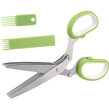 Show moreIntroducing the **Herb Scissors Stainless Steel 5-Blades Shears**, the essential kitchen tool you've been waiting for! Designed to make herb preparation a breeze, these scissors feature **five ultra-sharp stainless steel blades**, expertly fixed with three sturdy rivets for enhanced durability and safety. Whether you're snipping fresh parsley, cilantro, or green onions, these shears reduce prep time significantly while ensuring precision cuts. The ergonomic handle, adorned with an anti-abrasive TPR soft lining, allows for a comfortable grip that prevents pain and numbness during extended use. Plus, they come with a safe cover and a cleaning comb to ensure your scissors stay in pristine condition!