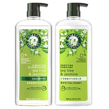 Show moreDiscover a rejuvenating hair care experience with the Herbal Essences Clarifying Shampoo and Purifying Conditioner Bundle. This duo comes in two 20.2 fluid ounce bottles, perfectly designed to cleanse and nourish your hair while enveloping you in the uplifting aroma of tea tree essence and refreshing jasmine. The clarifying shampoo effectively lifts away impurities while the lightweight conditioner provides essential moisture without weighing your hair down. Ideal for those seeking a purifying wash that is also gentle on color-treated tresses, this bundle is crafted without mineral oil, ensuring your hair remains vibrant and healthy.