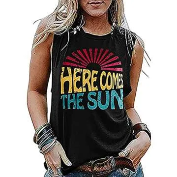 Here Comes The Sun Tank Shirt for Women - Sunshine Graphic Summer Vest Tees