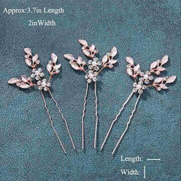 Heread Leaf Bride Wedding Hair Pins - Sparkling Crystal Pearls for Women (Pack of 3)