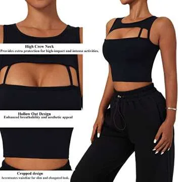 Discover the ultimate in comfort and style with the HerGymClothing Women's Longline Sports Bra. Designed for the active woman, this hollow out padded wirefree yoga crop tank provides high support while ensuring you look fantastic during your workouts or casual outings. The soft fabric gently hugs your curves, providing a flattering silhouette while allowing for maximum movement. Its versatile black color makes it easy to pair with any outfit, making it a perfect addition...