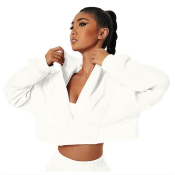HerGymClothing Women’s Cropped Workout Sweatshirt Athletic Jacket Half Zip (Milk White, M)