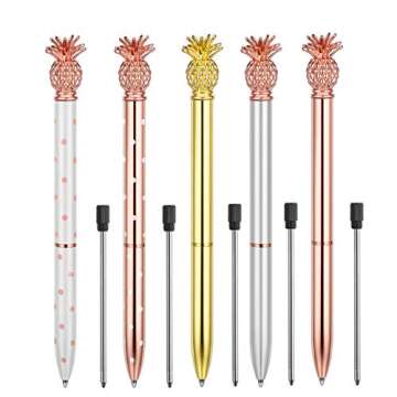 Herisa 5 Pcs Pineapple Pens,Metal Ballpoint Pen - Beatiful Bling Cute Ballpoint,Rose Gold/Silver/White/Gold,Office Supplies and School Desk Accessories,Medium Point,1.0mm,Black Ink,5 Extra Refills
