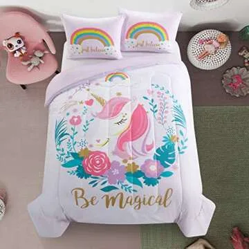 Heritage Kids Kids and Toddler Ultra-Soft Magical Unicorn and Rainbow Easy-Wash Microfiber Comforter Bed Set, Twin, Light Pink