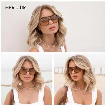 HERJOUR Retro Aviator Trendy Sunglasses Womens Mens 70s Classic Vintage Double Bridge Sun Glasses AR82209