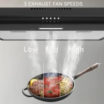 Show moreUpgrade your kitchen with the Hermitlux Under Cabinet Range Hood, a stylish and efficient choice for any modern home. This 30-inch black vent hood is designed to fit seamlessly in your kitchen while delivering outstanding performance. Incredible value meets quality in this well-crafted kitchen exhaust, featuring a striking stainless-steel finish that enhances your kitchen’s aesthetic. With a 3-speed push button control, you can effortlessly adjust the ventilation to suit your cooking needs, while the cold, bright LED lights provide excellent visibility over your stove. Furthermore, the Hermitlux range hood offers two venting options: ducted or ductless, providing you with the flexibility you need for your kitchen setup. It’s easy to install and comes complete with a charcoal filter to ensure efficient operation when used in ductless mode. Designed not just for functionality, but also for a space-saving solution, the slim profile fits comfortably beneath your cabinets without compromising on suction power.