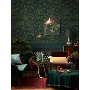 Heroad Peel and Stick Wallpaper 236" x 17.3" Dark Green Contact Paper Gold Floral Wall Paper Modern Boho Removable Contact Paper for Cabinets Drawers Bedroom Self Adhesive Vinyl Papel Tapiz Para Pared