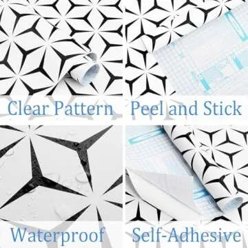Show moreDiscover the breathtaking beauty of the Heroad Wall Paper Peel and Stick Wallpaper, expertly designed to elevate any room with a modern black and white geometric motif. Perfectly blending style with functionality, this wallpaper is crafted from high-quality faux vinyl/pvc material, ensuring durability and a premium look while adhering to your surfaces effortlessly. Measuring 17.7" x 118" per roll, you'll cover an impressive 14.5 square feet, making it a cost-effective and designer choice for both novice decorators and seasoned pros alike.