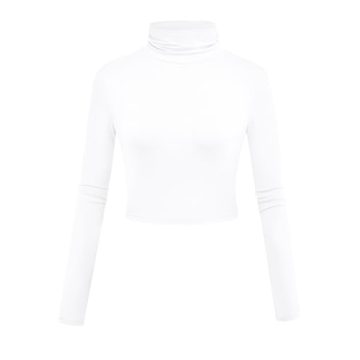 Herou Crop Tops for Women - Stylish Long Sleeve Turtleneck Crop Top in White