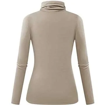 Herou Womens Turtleneck Casual Long Sleeve Slim Fitted Layer Tops Shirts Light Coffee Large