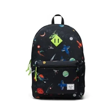 Show more Introducing the Herschel Supply Co. Youth Heritage Backpack in Space Adventure – a vibrant and functional backpack tailored for children aged 8-12. This spacious backpack boasts a 26-liter capacity, perfect for school supplies, books, and snacks for your young adventurers! Crafted with durability in mind, it features a spacious main compartment alongside multiple zippered pockets with practical prussik pull cords, making it easy for kids to stay organized. Plus, equipped with a wipeable front, back, and bottom panel liner, this backpack is designed to accommodate the messiness of childhood with effortless style.
