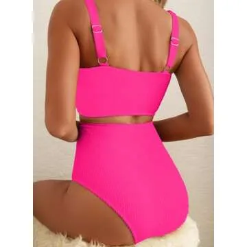 Herseas Women's Bikini Sets Scrunch Square Neck Swimsuits Slimming Wireless Resort Bathing Suits Hot Pink Vacation Outfits Small