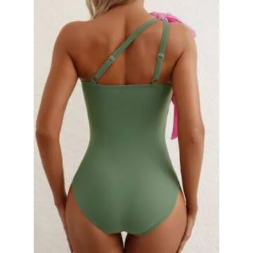 Herseas Women's One Piece One Bow Shoulder Cutout Padded Swimsuit High Waisted Teen Green Bathing Suit Cruise Outfits Medium