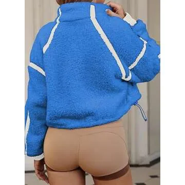 Herseas Women's Full Zip Fleece Jacket - Soft Sherpa Cropped Coat in Royal Blue