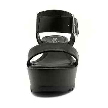 Herstyle Carita Womens Platform Sandals Open Toe Ankle Strap Flatform Wedge Casual Sandal Black White Chunky Platform Sandals Comfortable Lightweight Lug Sole Wedges for Summer, Black, Size 10.0