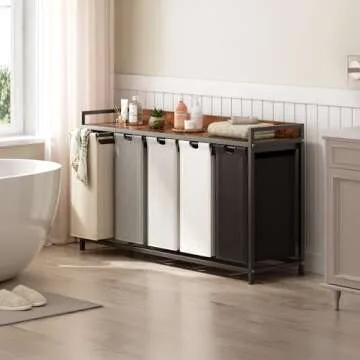 Show moreIntroducing the Herture Laundry Hamper with Shelf, your ultimate solution for organizing laundry in style. This thoughtfully designed laundry basket features a large capacity of 5 sections with pull-out removable bags, each holding up to 15.87 gallons (60L). Its four-color scheme makes it not only functional but visually appealing, allowing you to effortlessly separate clothes by color or type. With overall dimensions of 54.33 L x 15.74 W x 33.66 H inches, this laundry hamper meets your needs for separation and organization without taking up too much space.